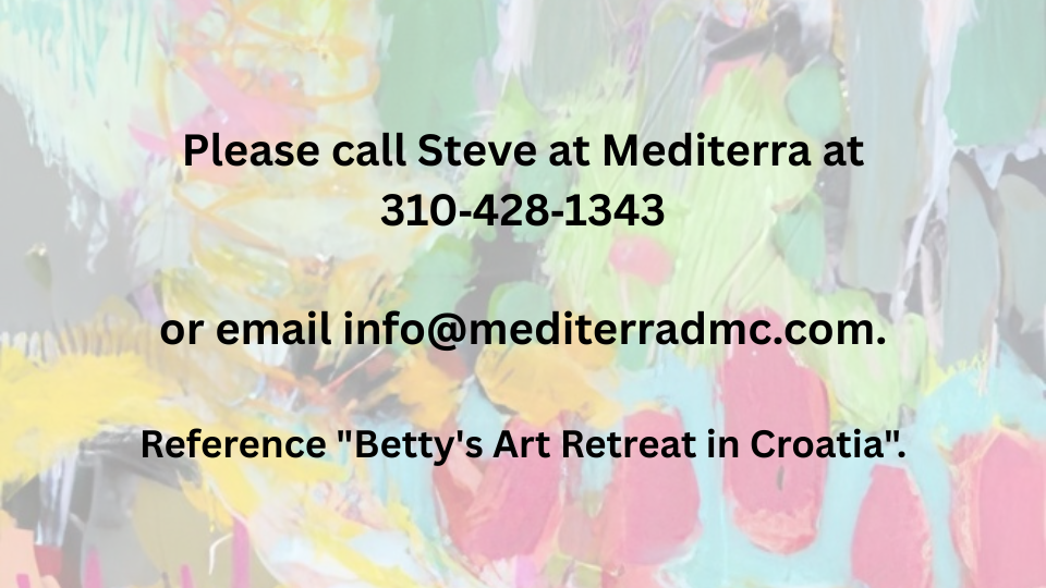 Please call Steve at Mediterra at 310‑428‑1343 or email [email protected]. Reference "Betty's Art Retreat in Croatia".